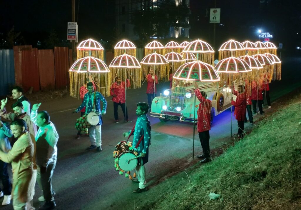 Swara Events brings elegance and energy to your celebrations with Brass Bands, Vintage Cars, Dhol, Horse Baggi, and grand Couple Entries. Memorable weddings, made magical.