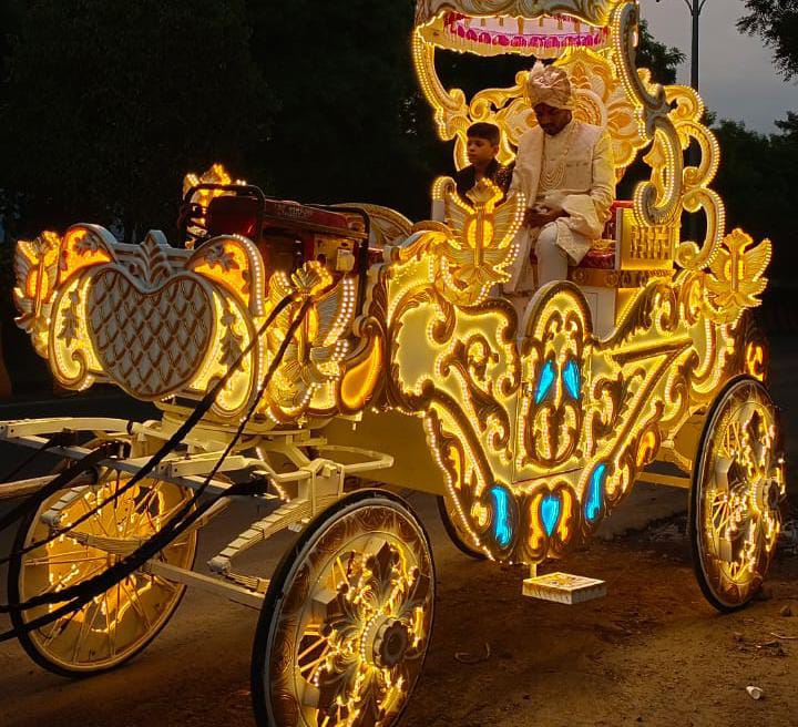 Make a majestic statement with our beautifully decorated Horse Baggi. A symbol of tradition and royalty, this classic entry option is perfect for grooms or couples who want a grand and timeless wedding vibe.